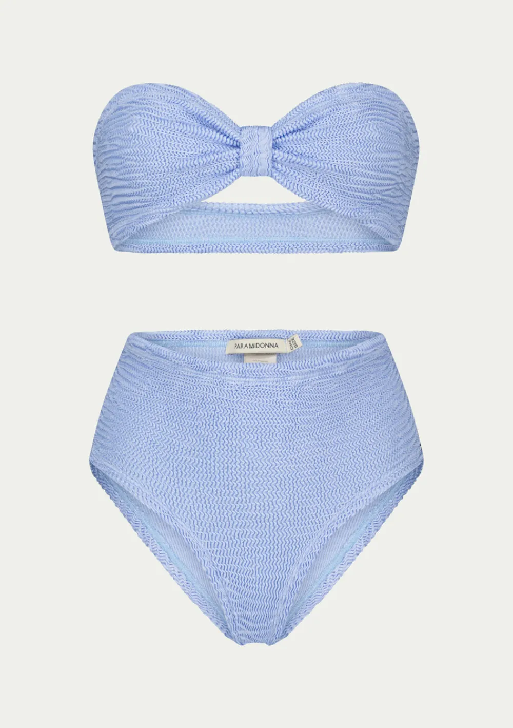 Two-piece swimsuit BETTY by PARAMIDONNA in one size. Made of premium, high-quality fabric with excellent elasticity, it guarantees a comfortable and secure fit for sizes XS to 2XL.The top is a stylish bandeau featuring an interesting detail highlighting the bust and giving a chic look. The bikini bottom is high waisted and elegantly shapes the waist providing coverage and comfort. The BETTY model combines chic design with functionality.