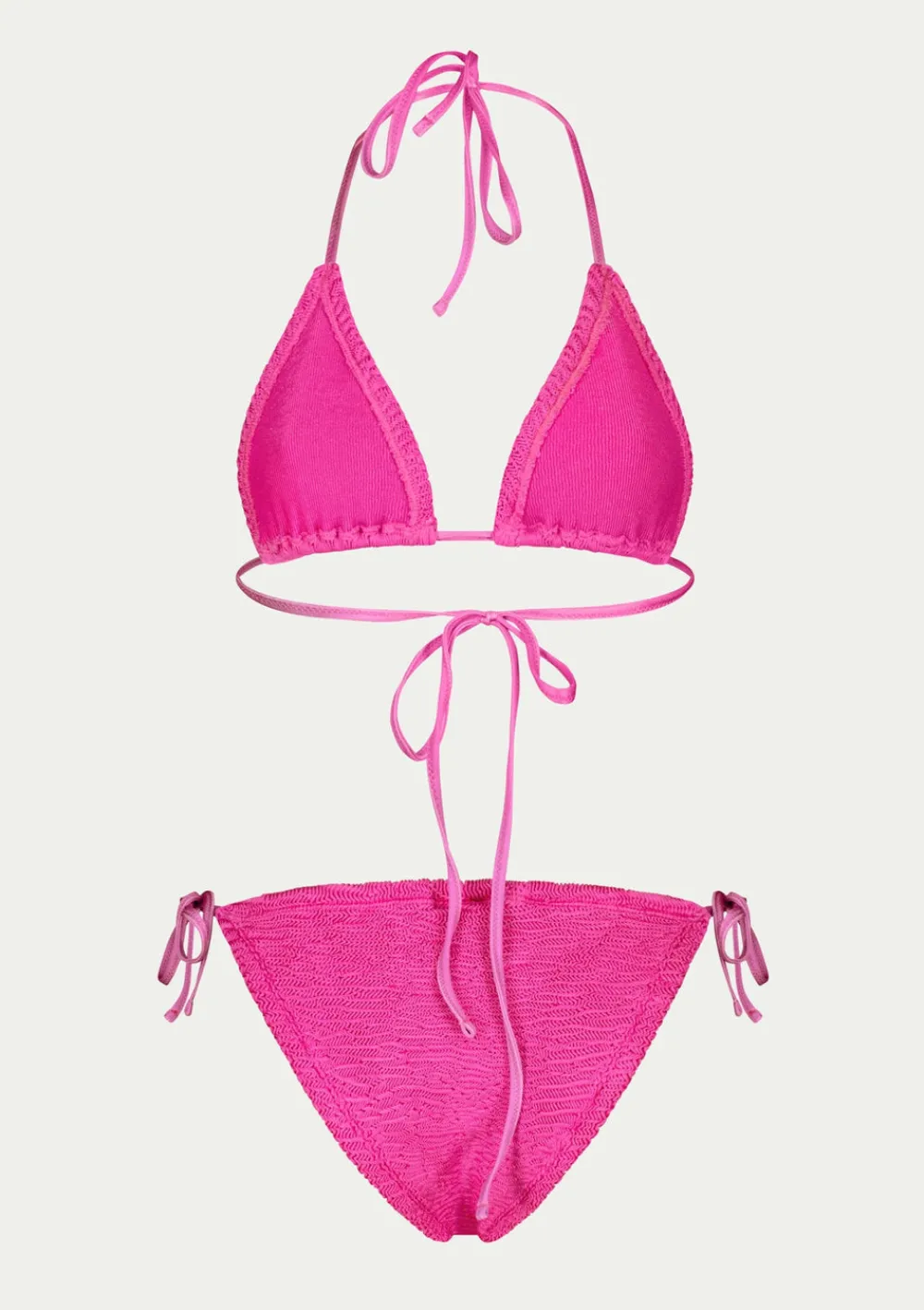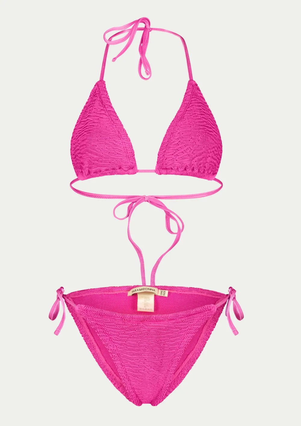 Two-piece swimsuit set EMA by PARAMIDONNA. The model has a classic triangular cup. The swimsuit is made of soft, high quality fabric with excellent elasticity to ideally fit different body types from size XS to 2XL. The adjustable top ties behind the neck and back, allowing it to be adjusted to each woman’s individual taste. The bottom also has side ties. The Ema set is designed for those looking for a stylish, classic and comfortable swimsuit.