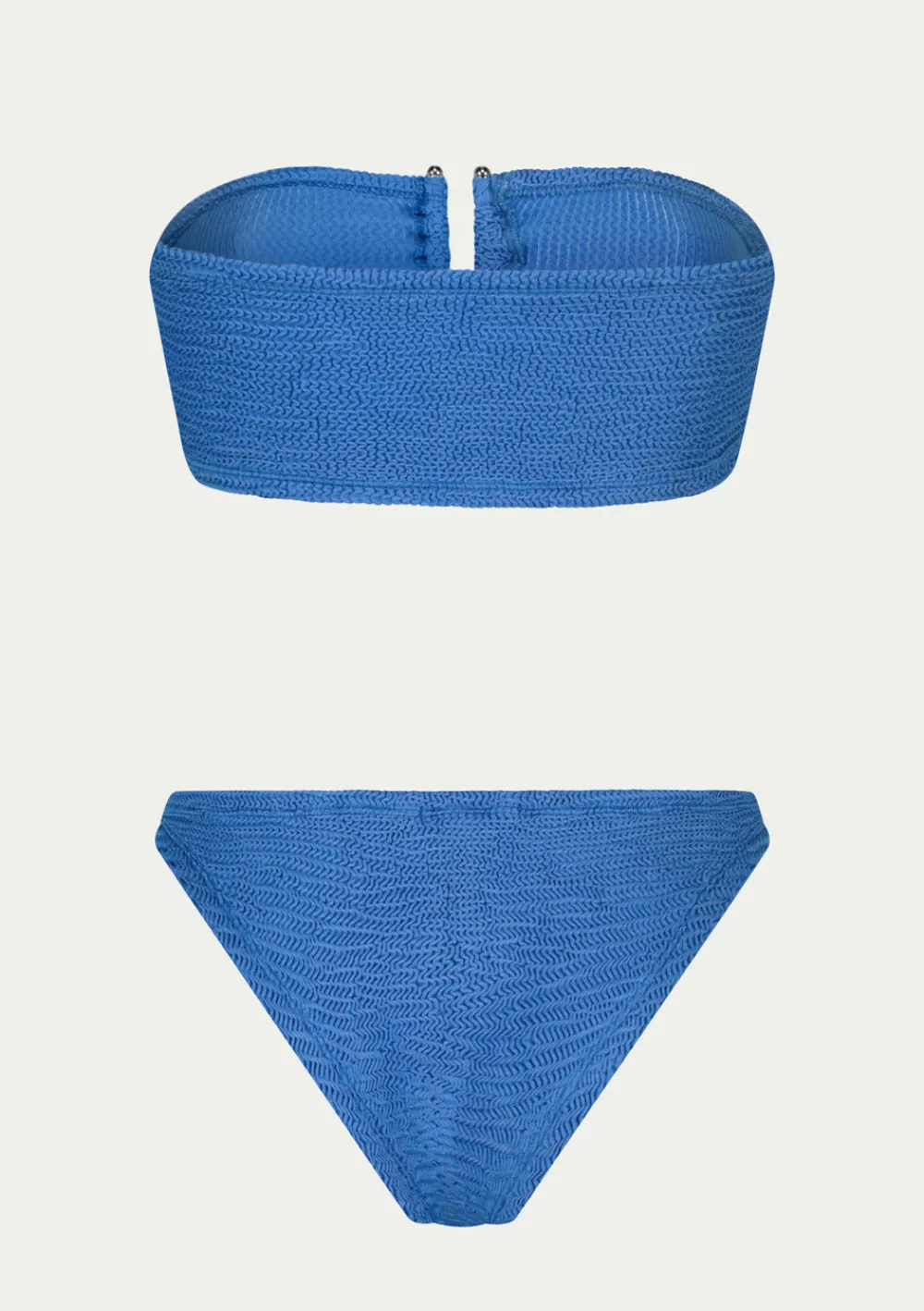 Two piece swimsuit FRIDA AZURE by PARAMIDONNA.This style fits through sizes from XS to 2XL. The top represents a classic bandeau bikini style featuring a hook accent at the front and a delicate cut. The bikini bottom is low waisted. To maintain the swimsuit’s high elasticity and bright color, please hand wash it with soap and warm water. Do not tumble-dry, only air-dry.