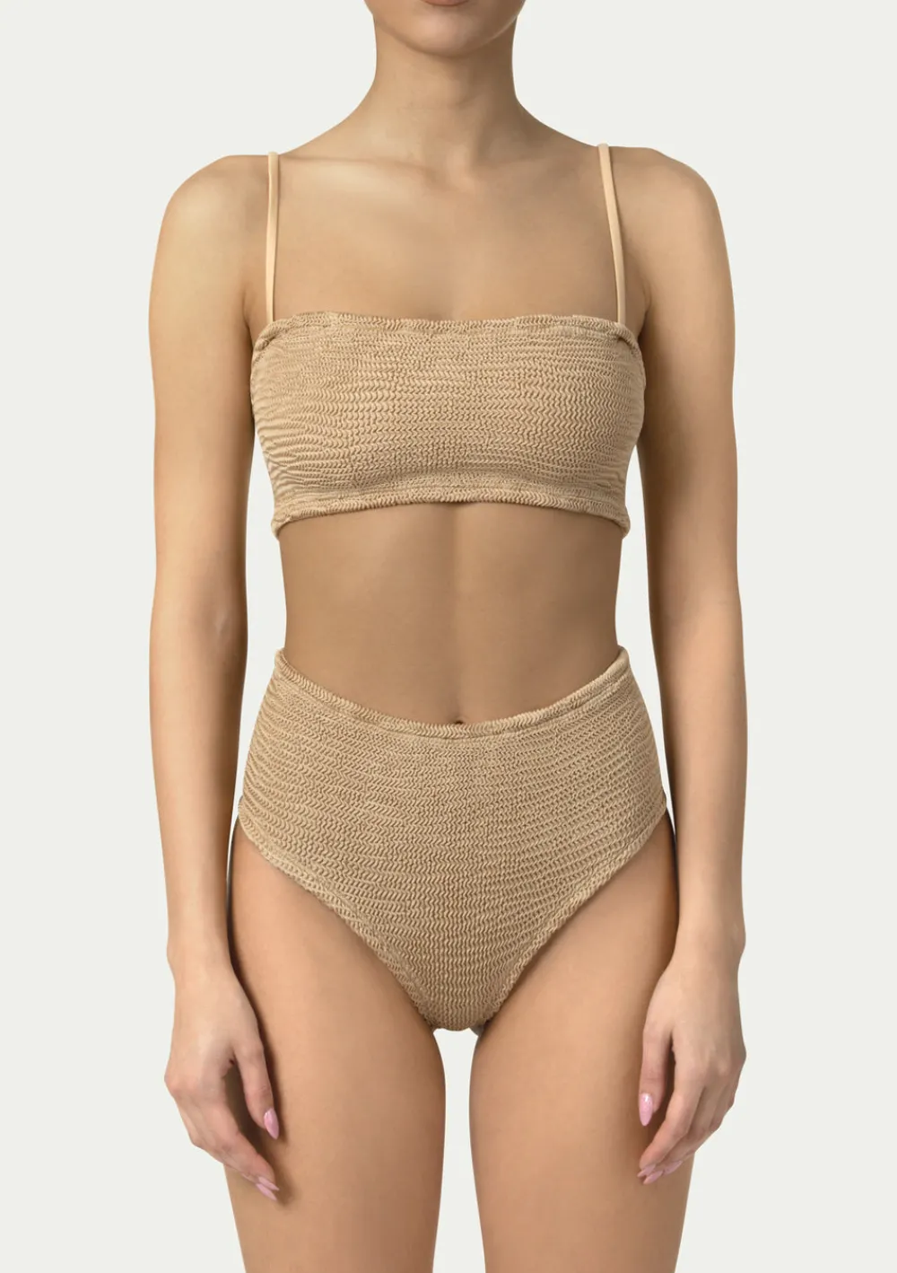 Details: straps, elastic fabric, high waist