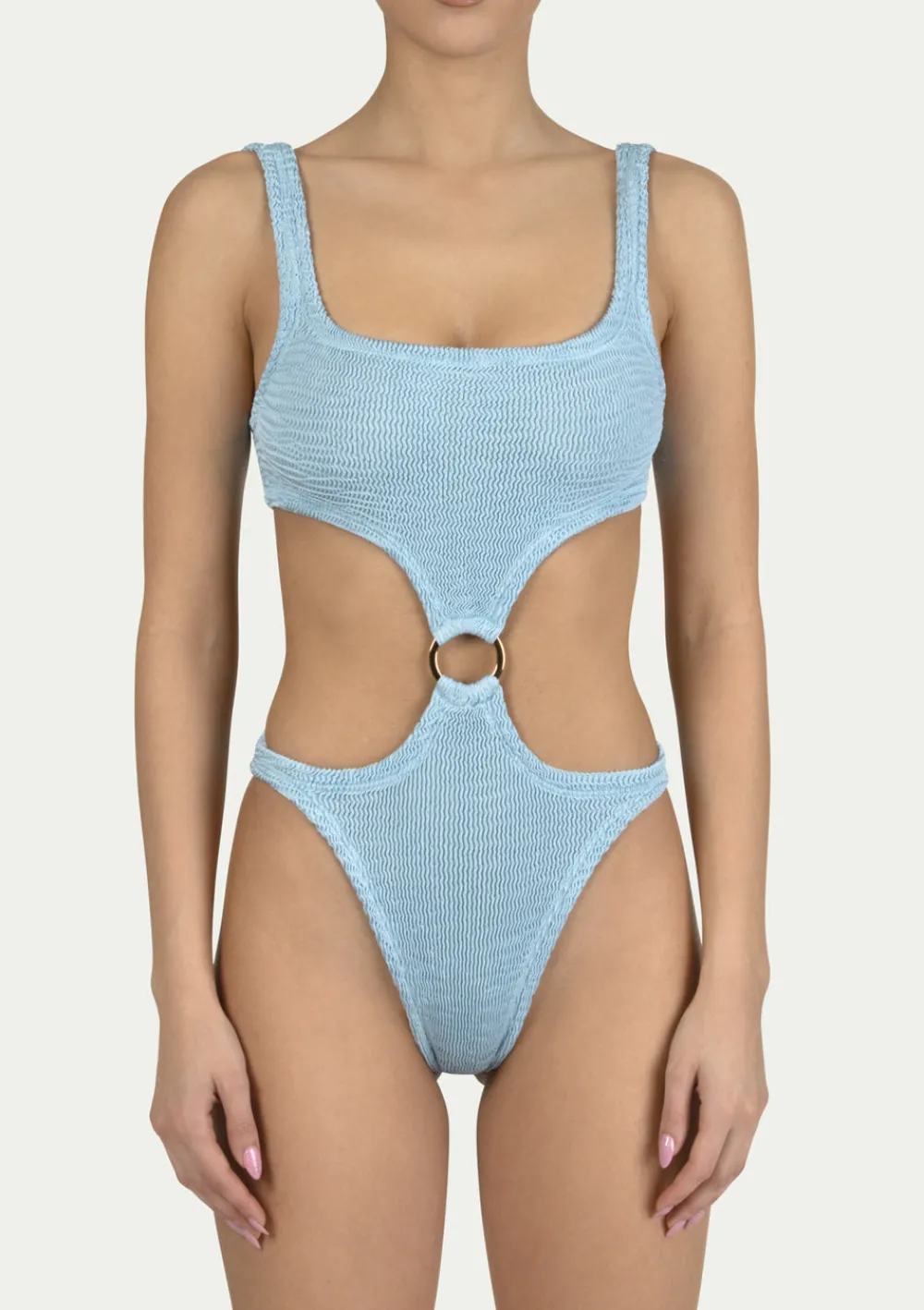 One piece swimsuit OLIVIA SKY made from highly elastic fabric which fits through sizes XS to 2XL. The model has two straps and cut out elements in front and back. To maintain the swimsuit’s high elasticity and bright color, please hand wash it with soap and warm water. Do not tumble-dry, only air-dry.